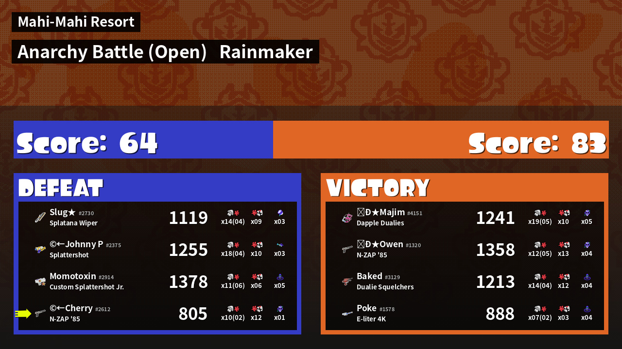 | Mode | Rainmaker - Anarchy Battle (Open) | ||