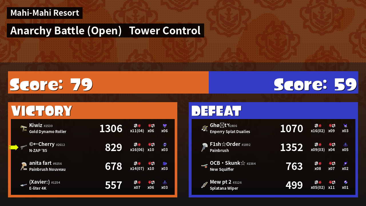 | Mode | Tower Control - Anarchy Battle (Open) | ||