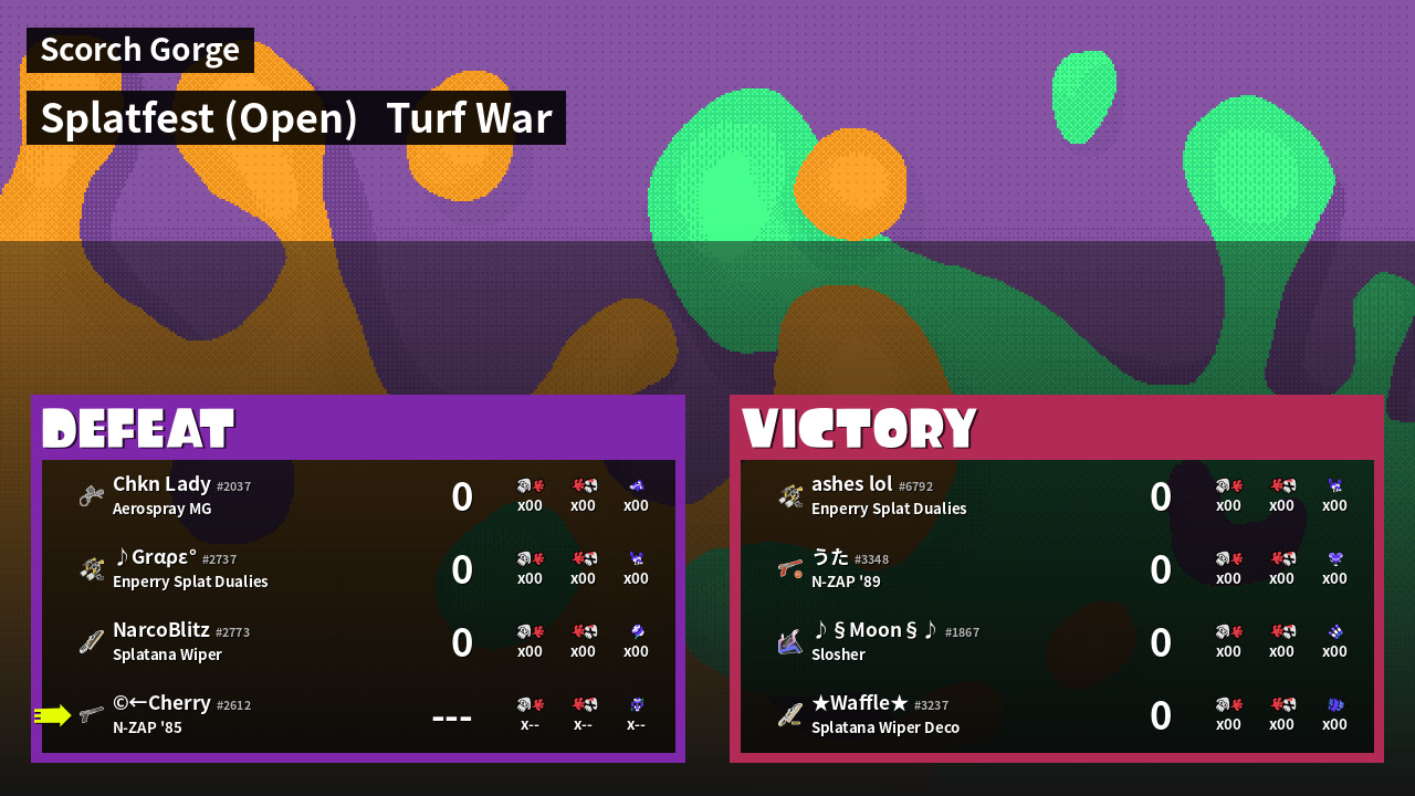 | Mode | Turf War - Splatfest (Open) | ||