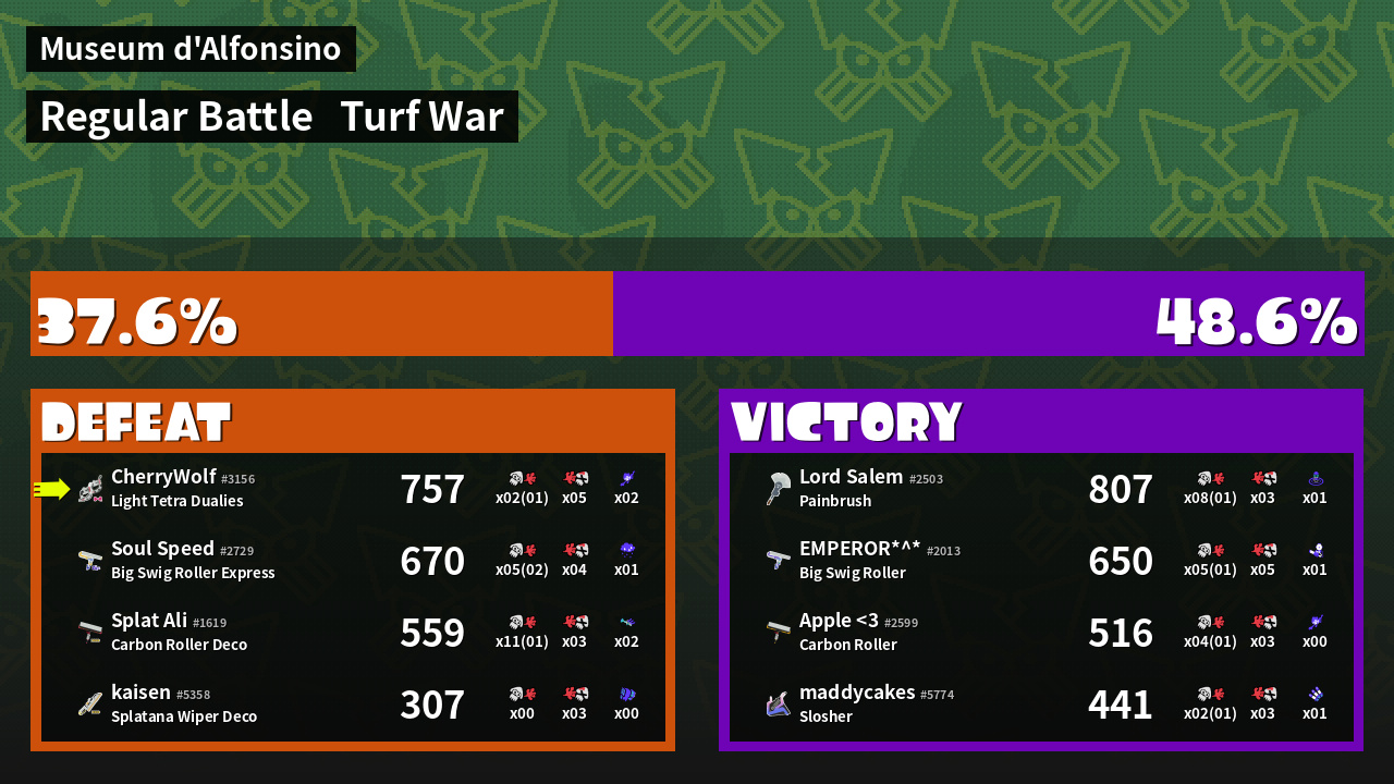 | Mode | Turf War - Regular Battle | ||