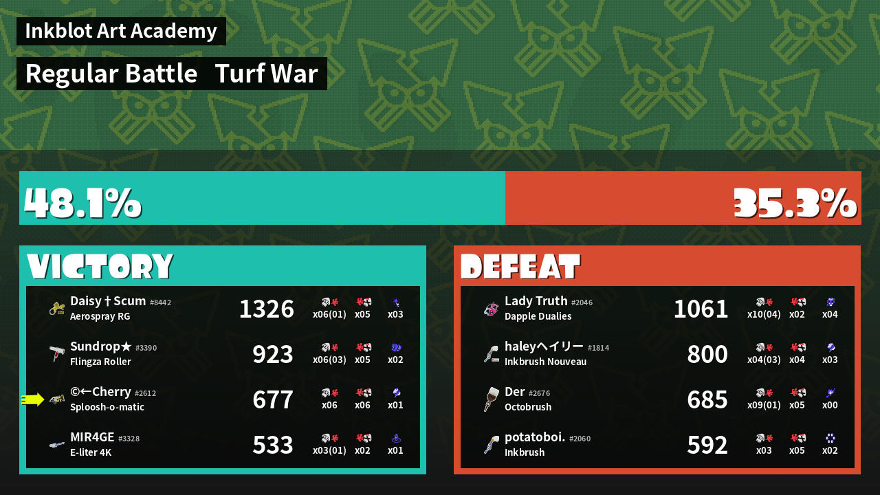 | Weapon | Sploosh-o-matic ( Curling Bomb / Ultra Stamp) | ||