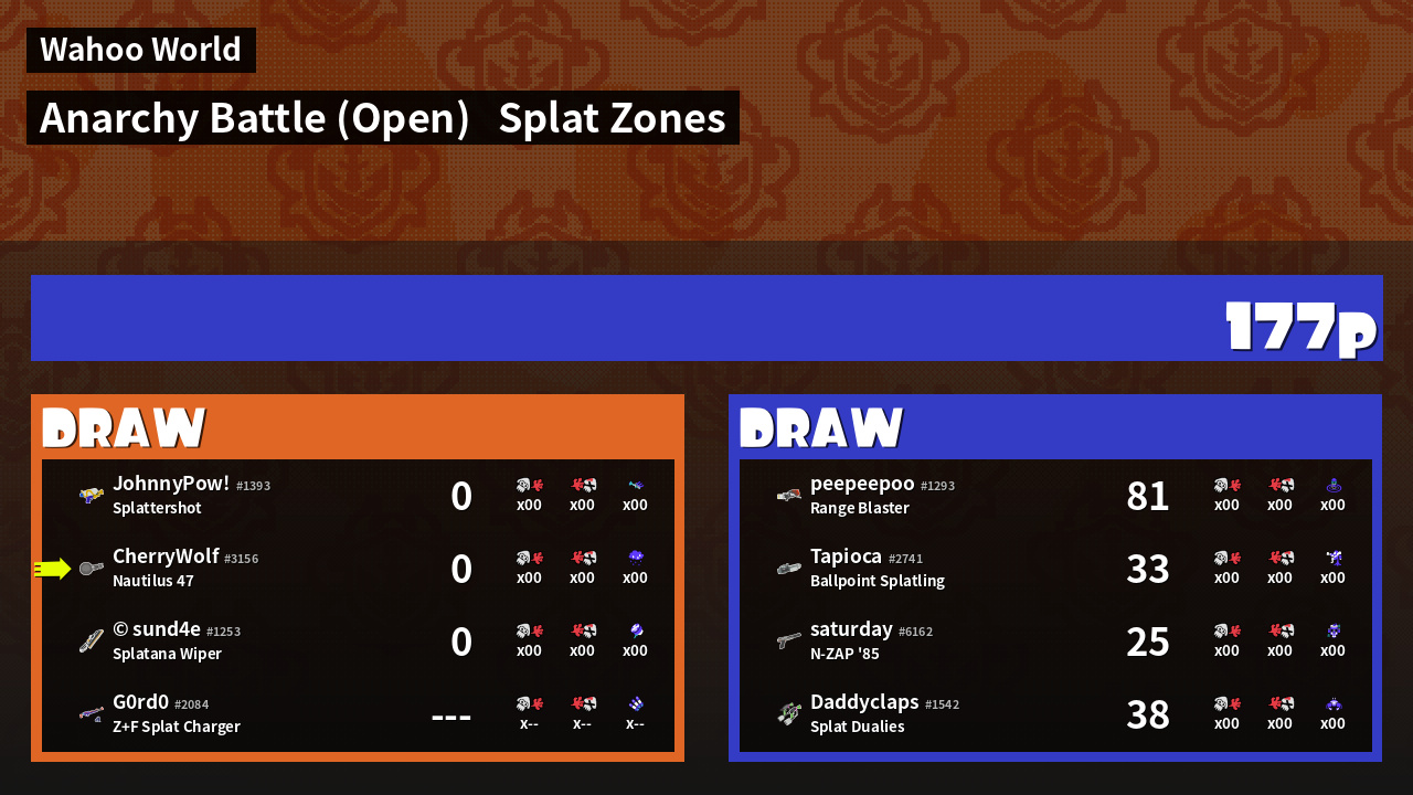 | Mode | Splat Zones - Anarchy Battle (Open) | ||