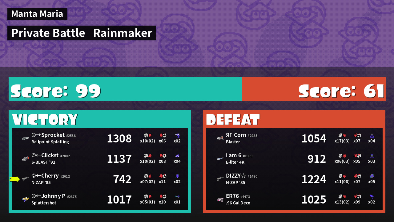 | Medals | #1 Popular Target #1 Super Jump Spot #1 Splat Assister | ||
