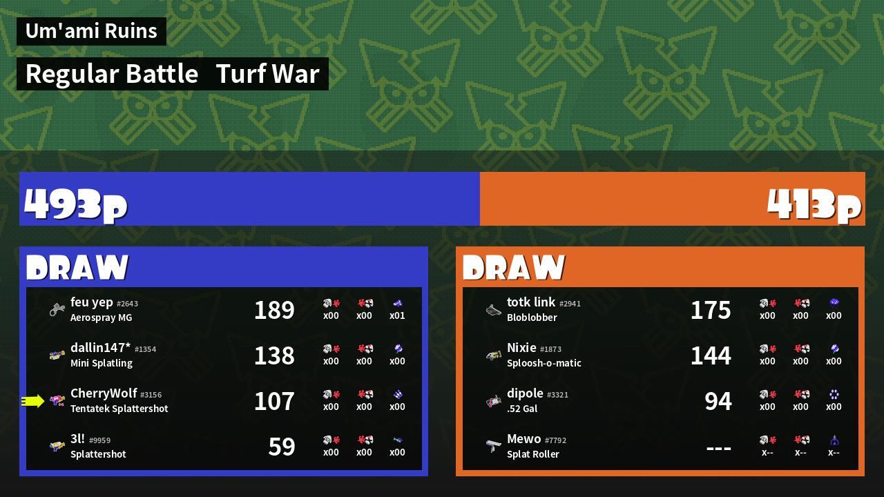 | Mode | Turf War - Regular Battle | ||