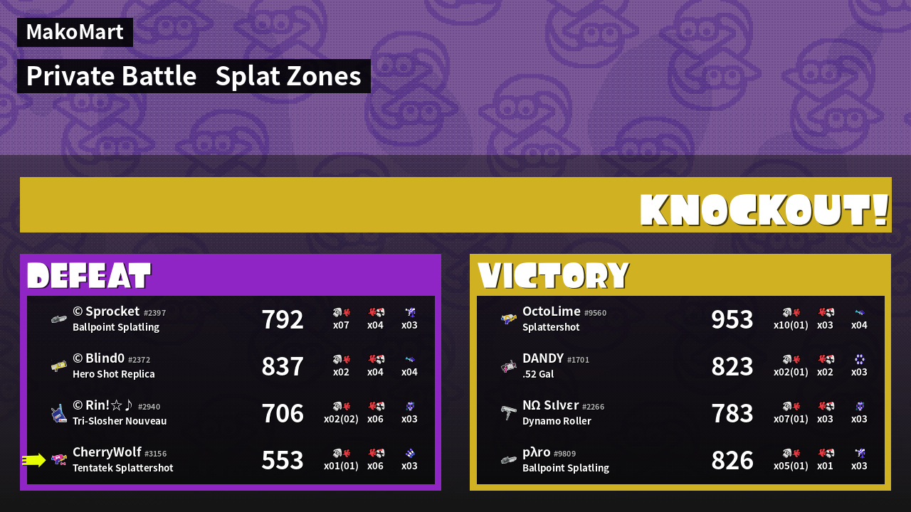 | Weapon | Tentatek Splattershot ( Splat Bomb / Triple Inkstrike) | ||
