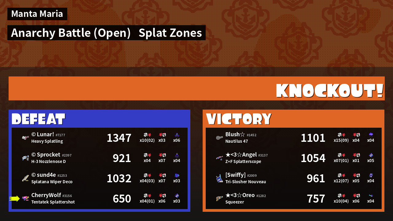 | Mode | Splat Zones - Anarchy Battle (Open) | ||