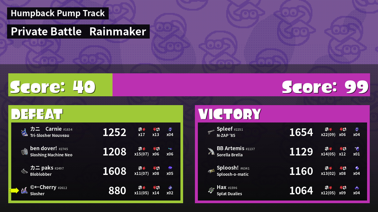 | Weapon | Slosher ( Splat Bomb / Triple Inkstrike) | ||