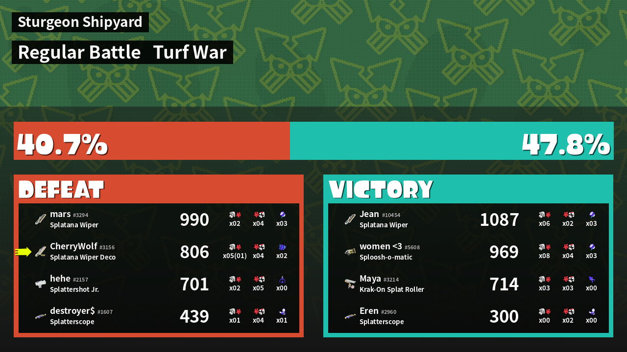 | Medals | #1 Overall Splatter #1 Popular Target #1 Enemy Splatter | ||