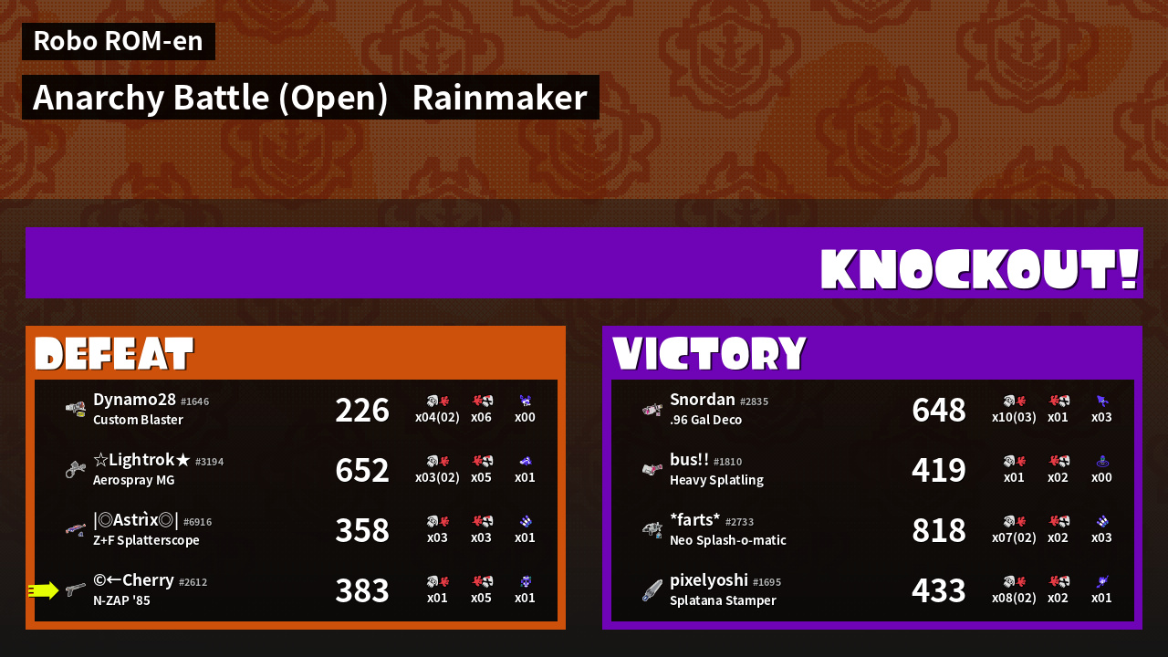 | Mode | Rainmaker - Anarchy Battle (Open) | ||