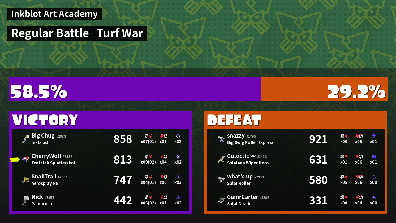 | Weapon | Tentatek Splattershot ( Splat Bomb / Triple Inkstrike) | ||