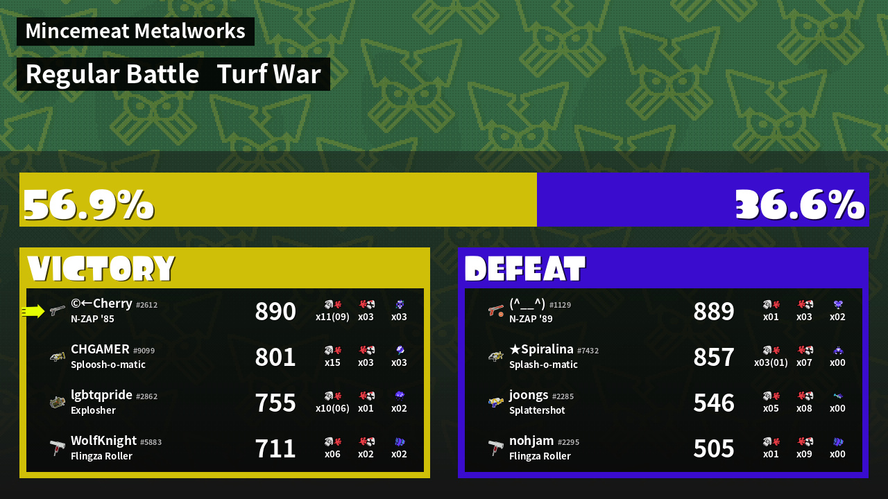 | Mode | Turf War - Regular Battle | ||