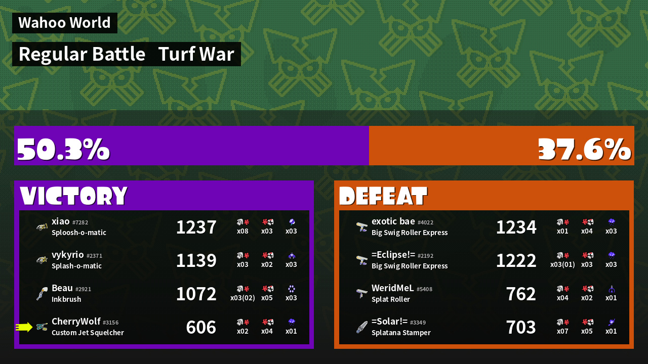 | Medals | #1 Super Jump Spot #1 Base Defender #1 Ink Consumer | ||