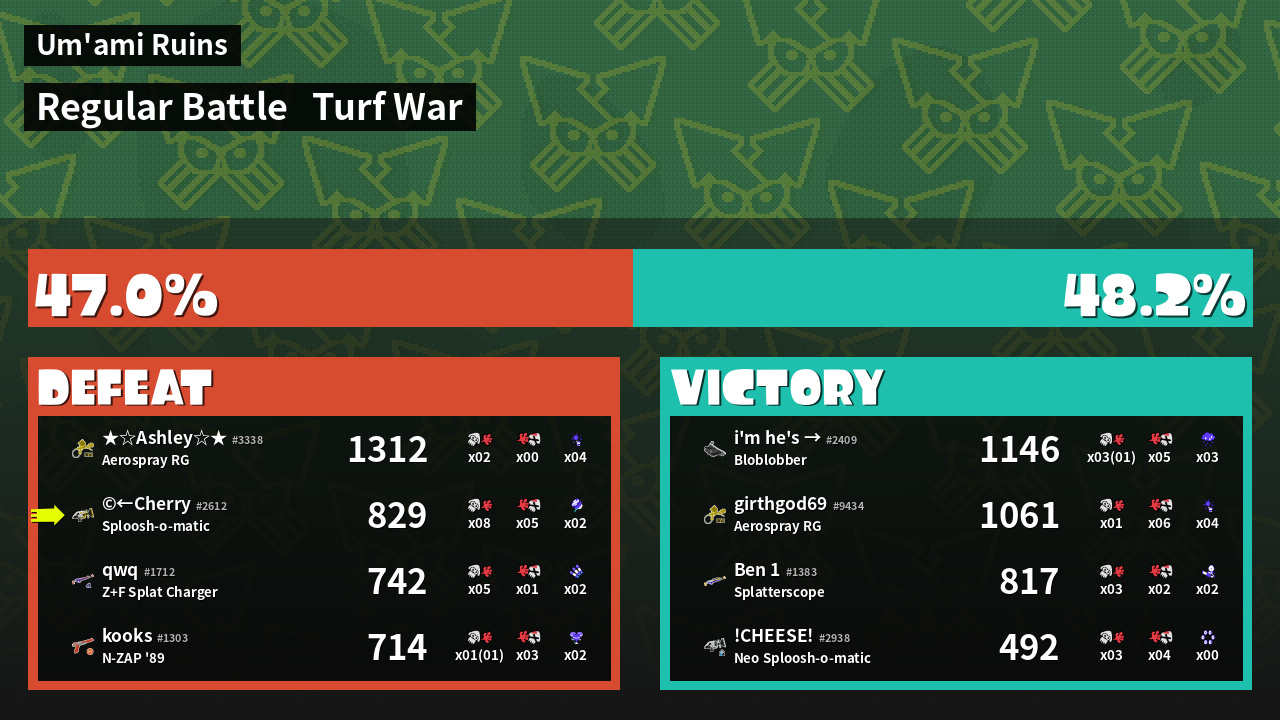 | Weapon | Sploosh-o-matic ( Curling Bomb / Ultra Stamp) | ||