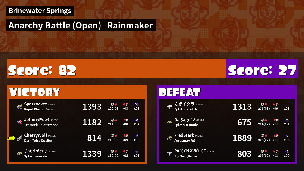 | Mode | Rainmaker - Anarchy Battle (Open) | ||