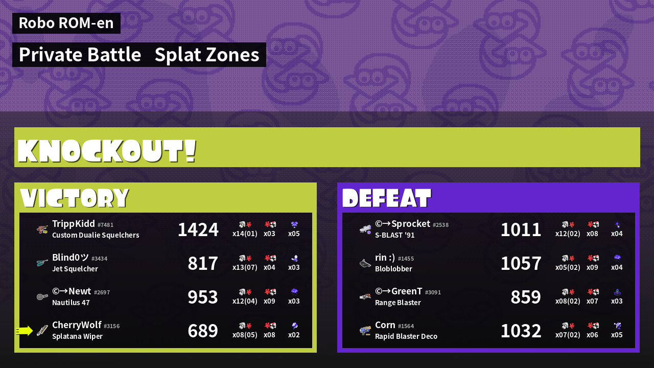 | Mode | Splat Zones - Private Battle | ||