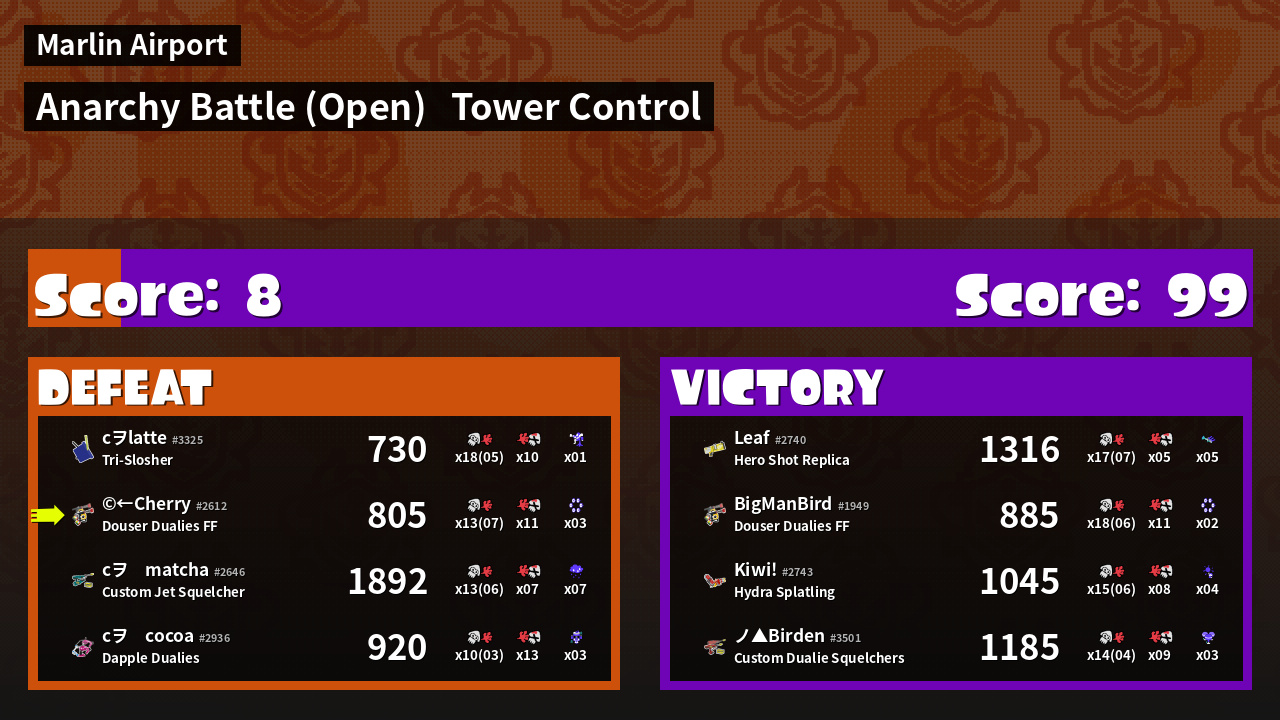 | Mode | Tower Control - Anarchy Battle (Open) | ||