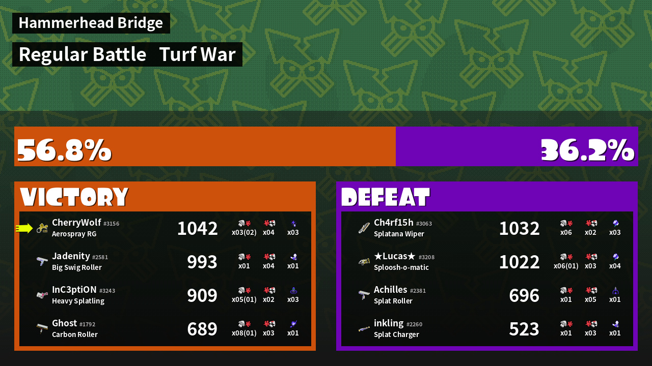 | Mode | Turf War - Regular Battle | ||