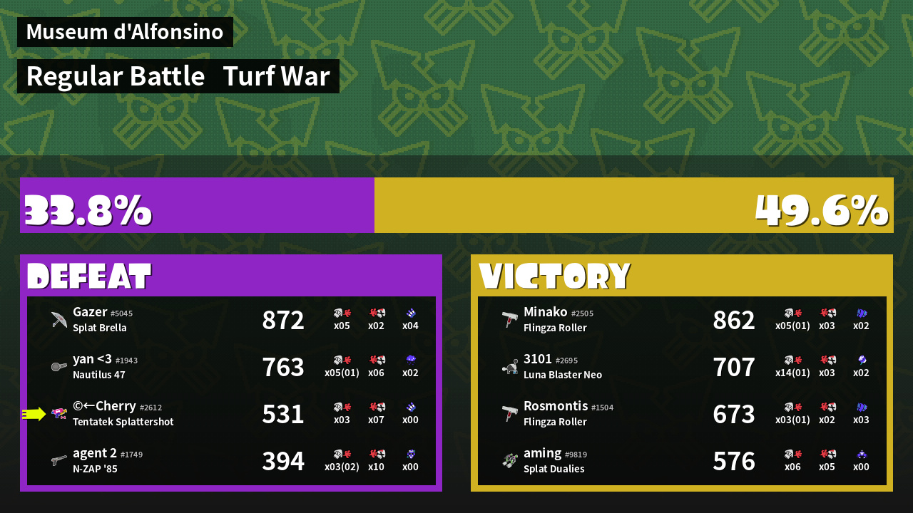 | Mode | Turf War - Regular Battle | ||