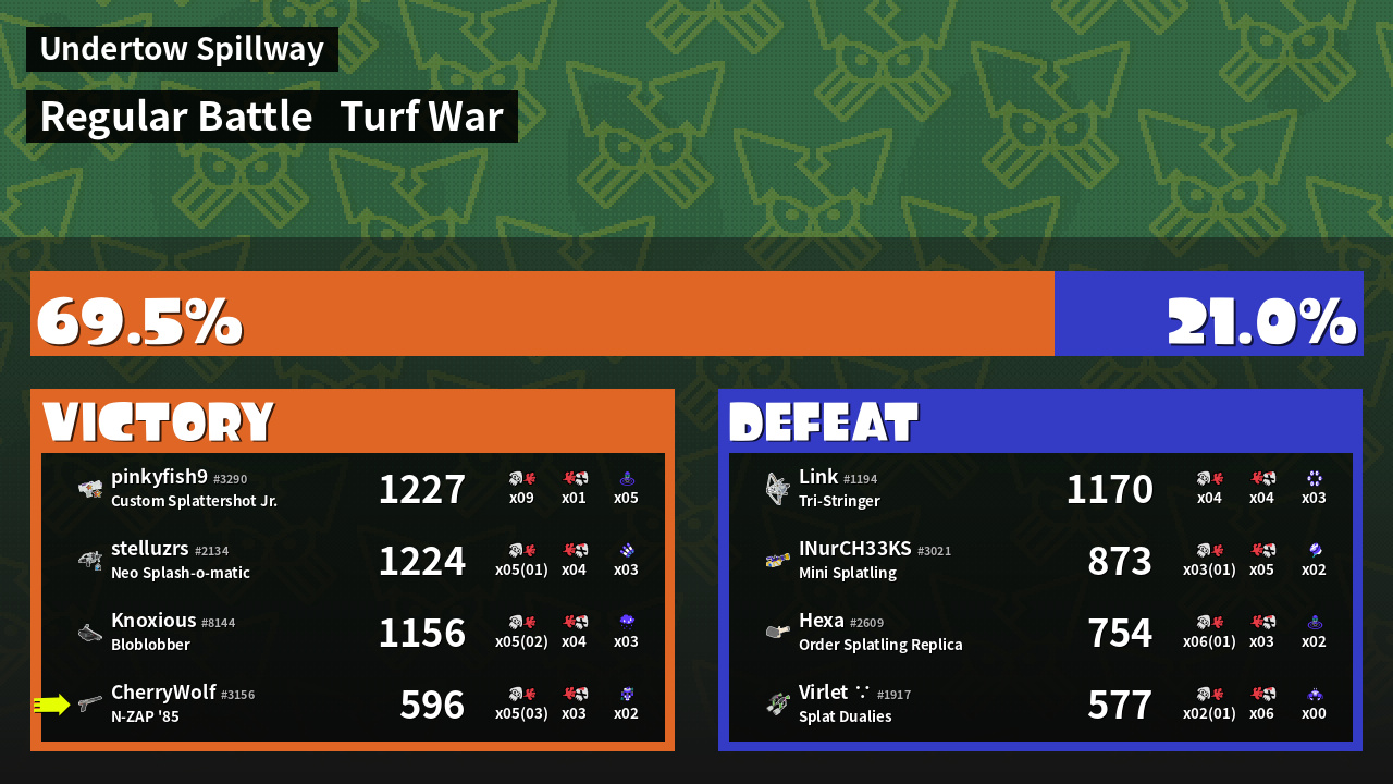 | Medals | #1 Splat Assister #1 Tacticooler User #2 Overall Splatter | ||