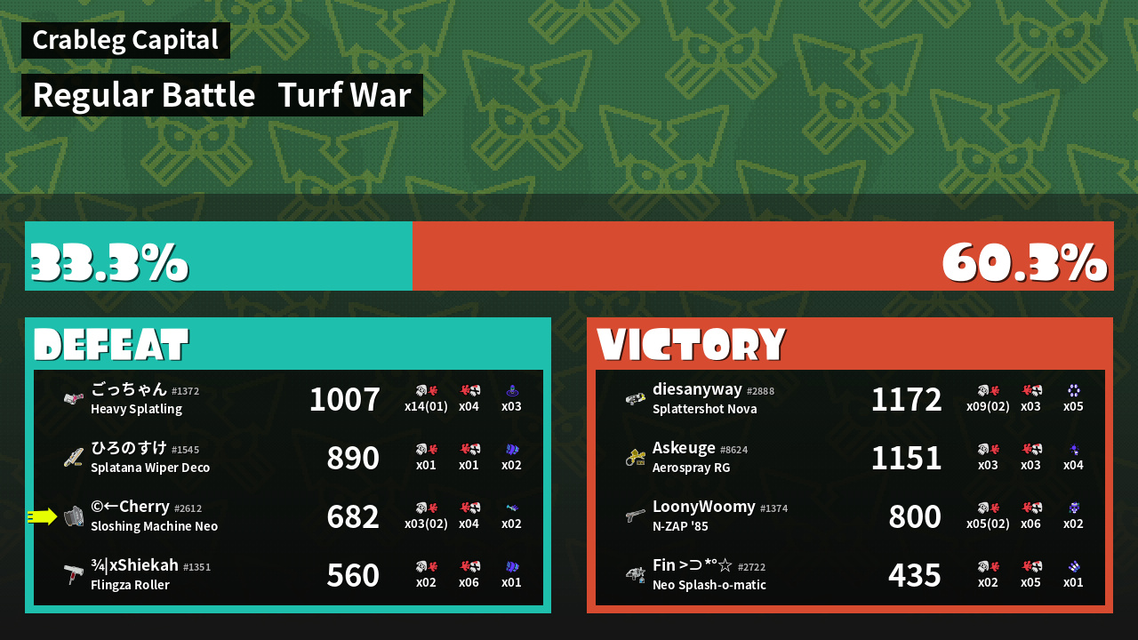 | Medals | #1 Splat Assister #1 Ink Consumer #2 Overall Splatter | ||
