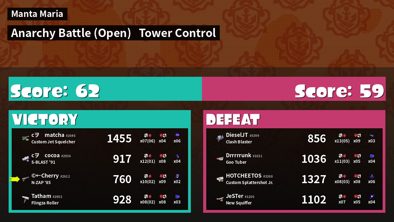 | Mode | Tower Control - Anarchy Battle (Open) | ||