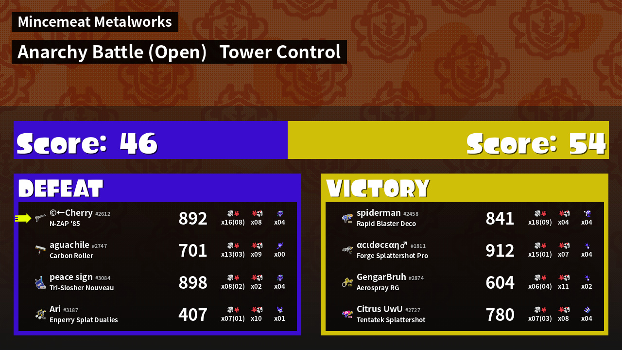 | Mode | Tower Control - Anarchy Battle (Open) | ||