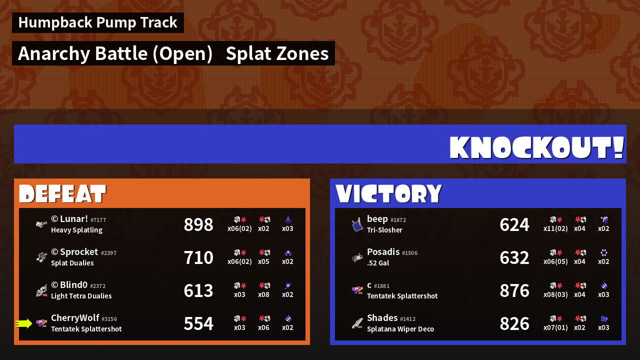 | Mode | Splat Zones - Anarchy Battle (Open) | ||