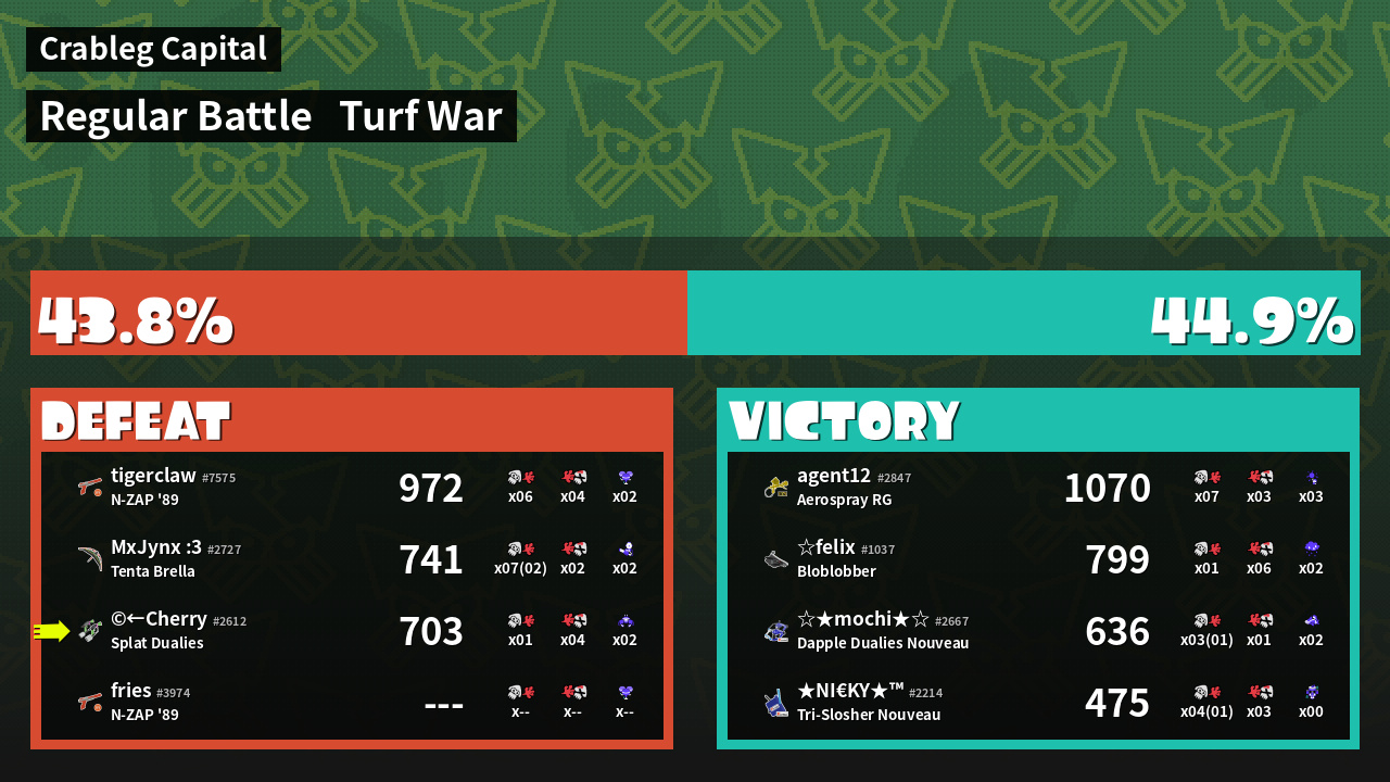 | Medals | #1 Home-Base Inker #1 Crab Tank User | ||