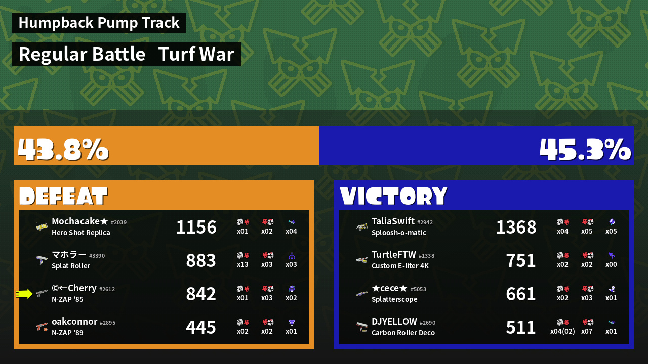 | Mode | Turf War - Regular Battle | ||