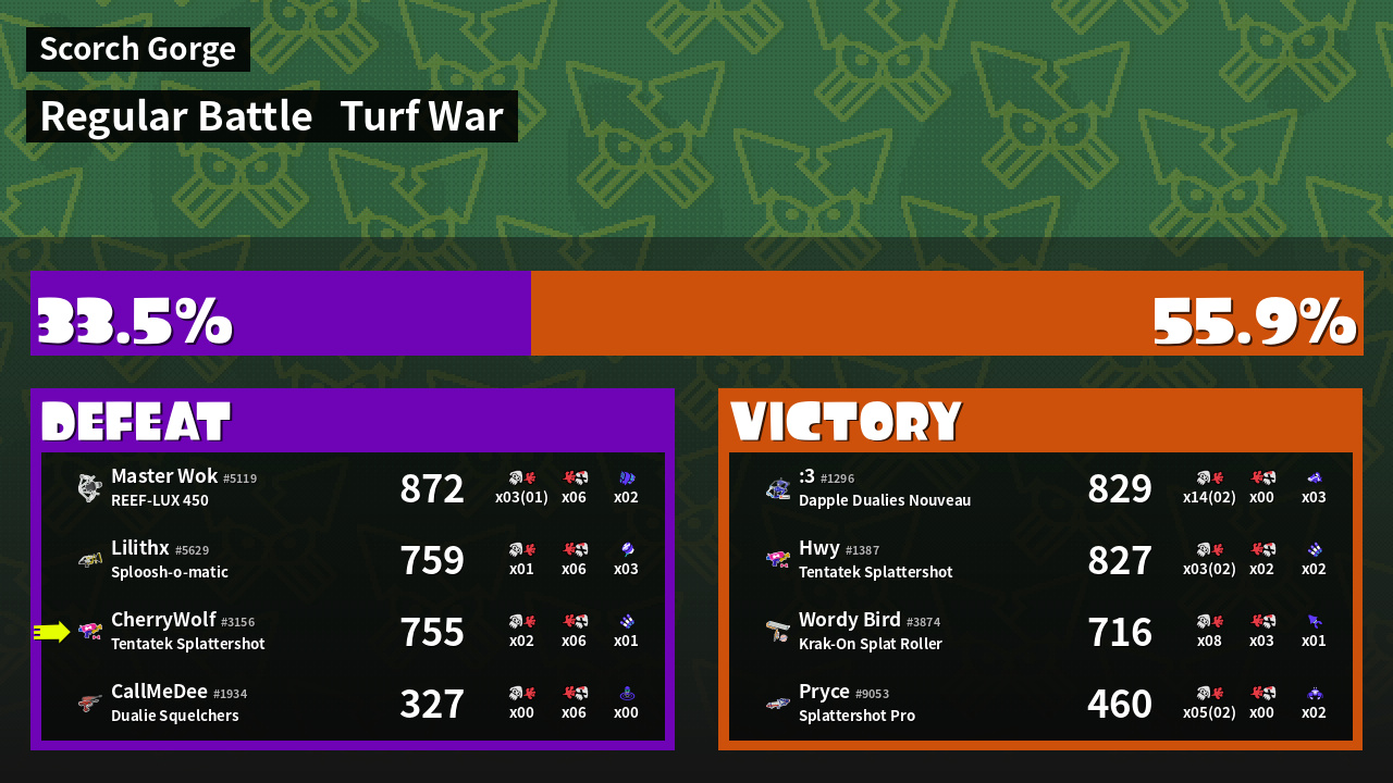 | Medals | #1 Enemy-Base Inker #1 Enemy Splatter #1 Ink Consumer | ||