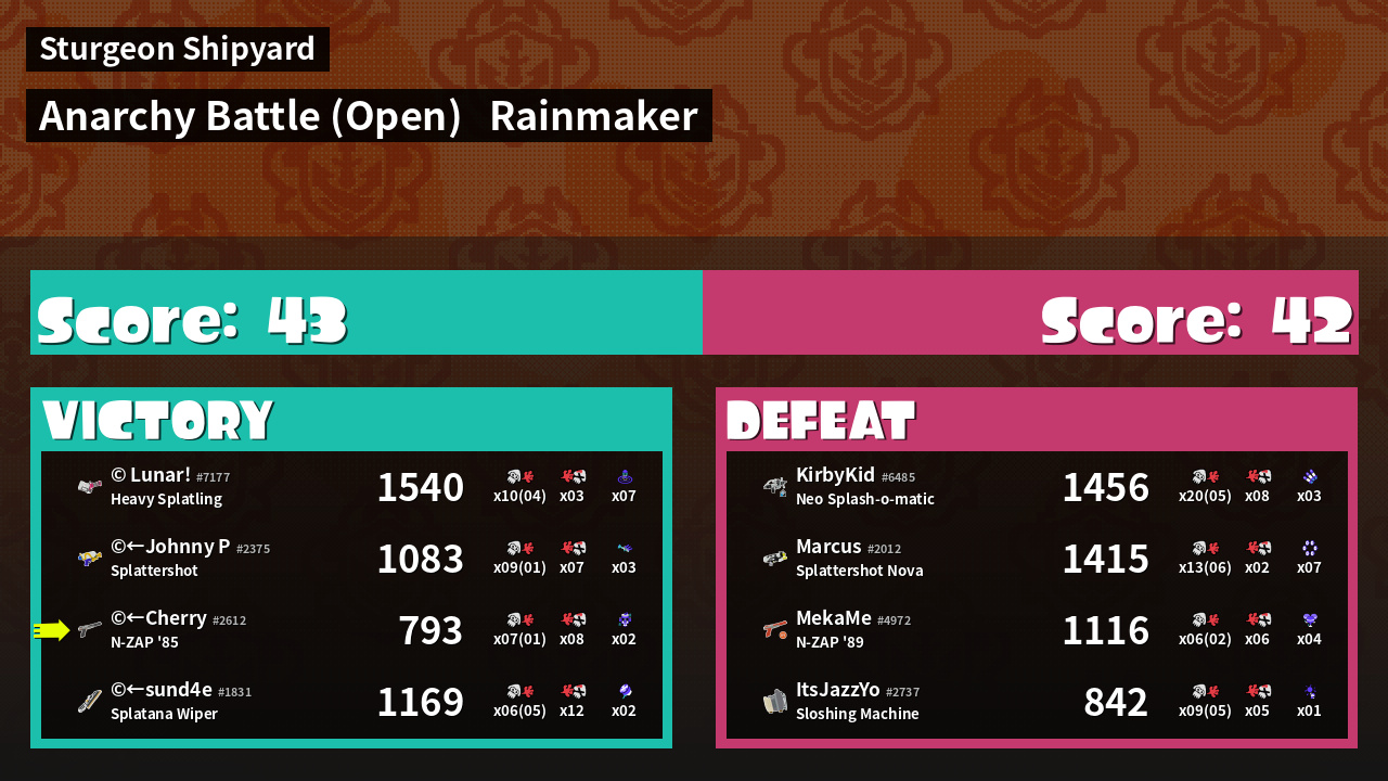 | Mode | Rainmaker - Anarchy Battle (Open) | ||