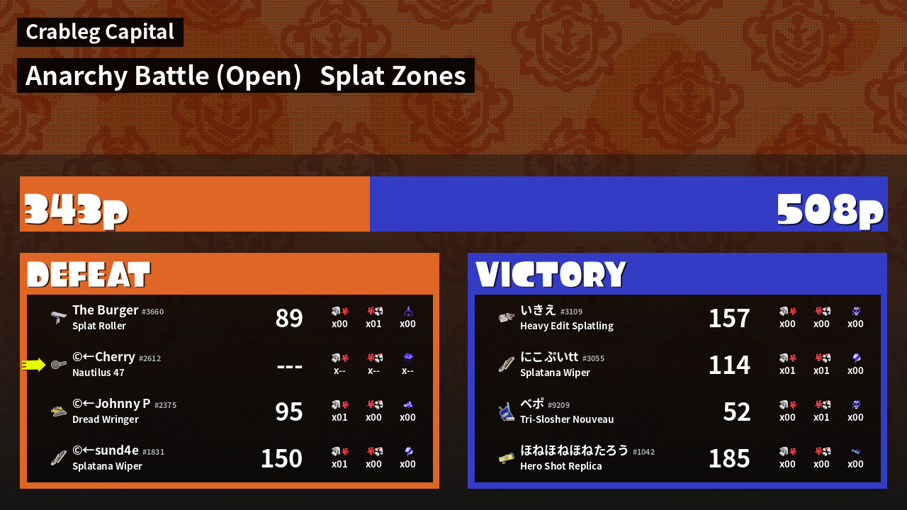 | Mode | Splat Zones - Anarchy Battle (Open) | ||