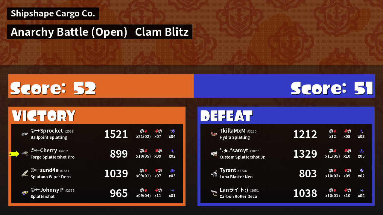 | Mode | Clam Blitz - Anarchy Battle (Open) | ||