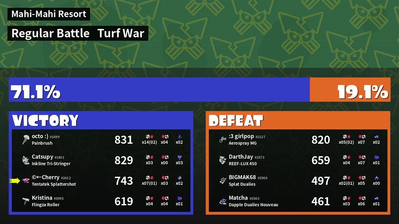 | Weapon | Tentatek Splattershot ( Splat Bomb / Triple Inkstrike) | ||