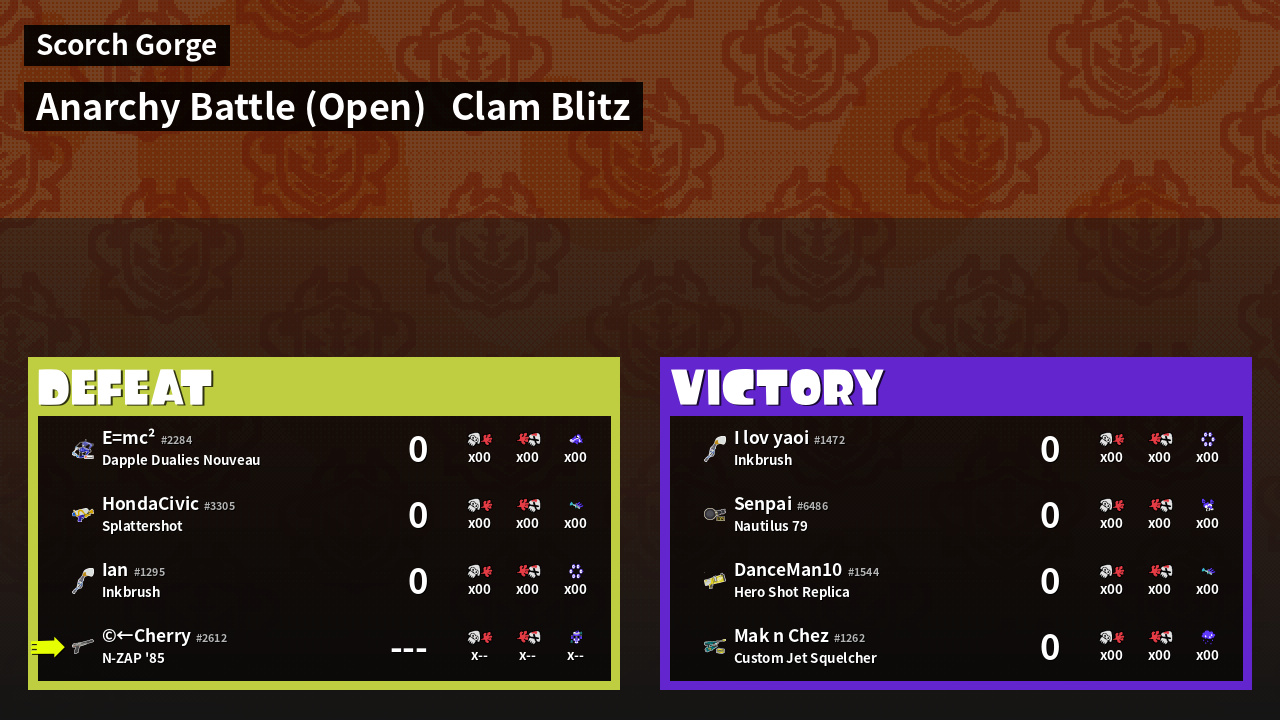| Mode | Clam Blitz - Anarchy Battle (Open) | ||