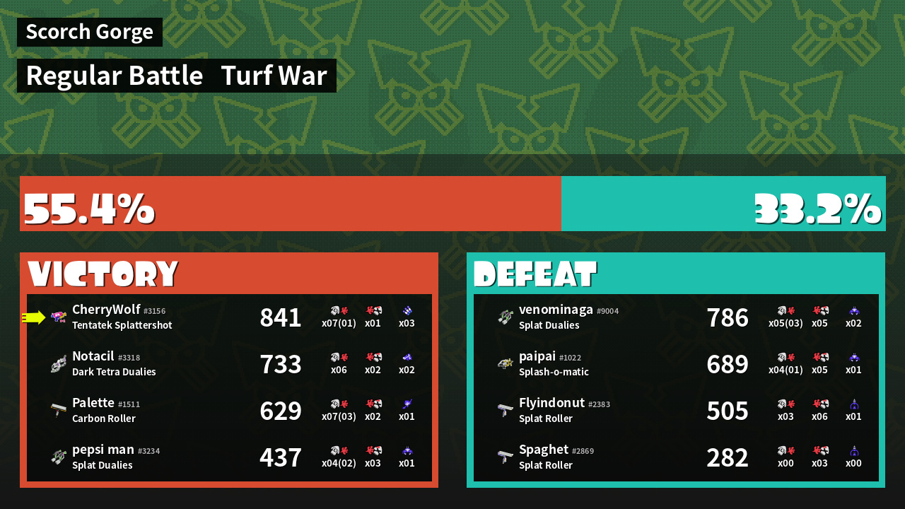 | Medals | #1 Overall Splatter #1 Turf Inker #1 Enemy-Base Inker | ||