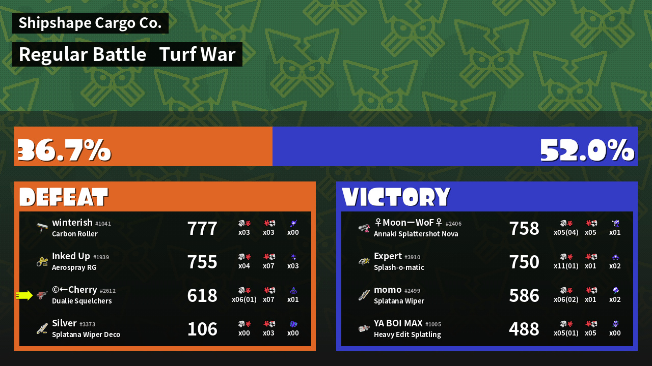 | Mode | Turf War - Regular Battle | ||