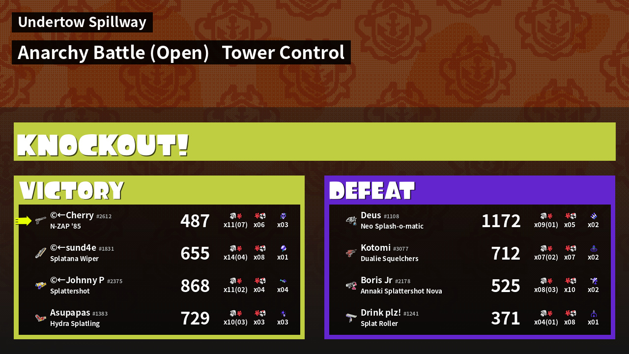 | Mode | Tower Control - Anarchy Battle (Open) | ||