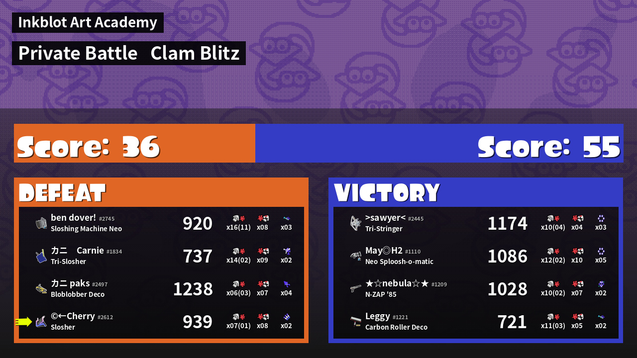| Mode | Clam Blitz - Private Battle | ||