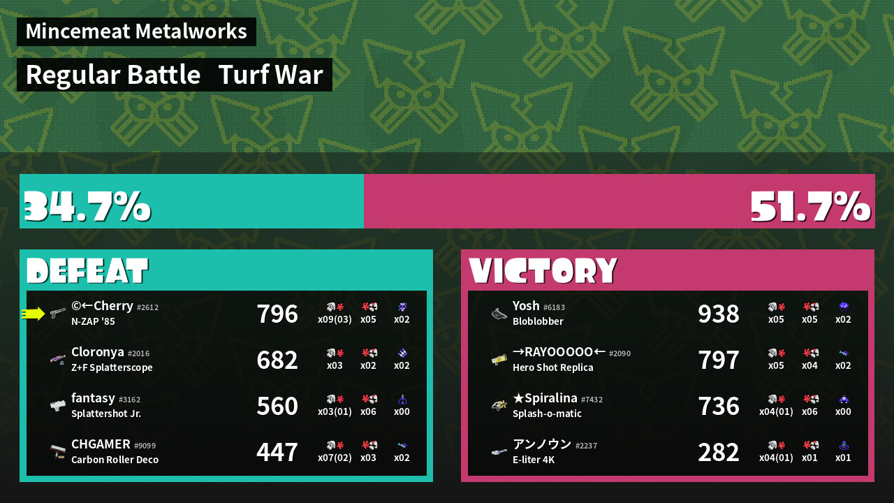 | Mode | Turf War - Regular Battle | ||