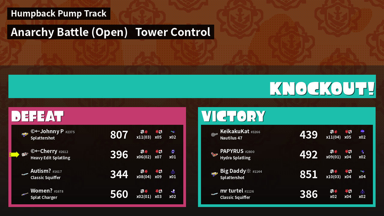 | Mode | Tower Control - Anarchy Battle (Open) | ||