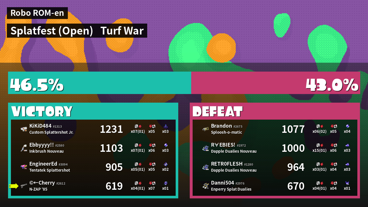 | Medals | #1 Splat Assister #1 Base Defender #1 Damage Taker | ||