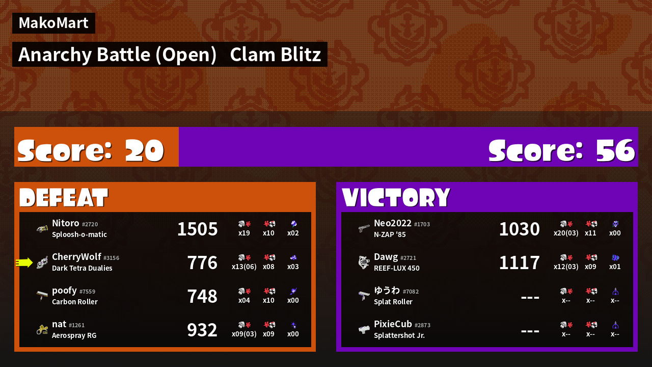 | Mode | Clam Blitz - Anarchy Battle (Open) | ||