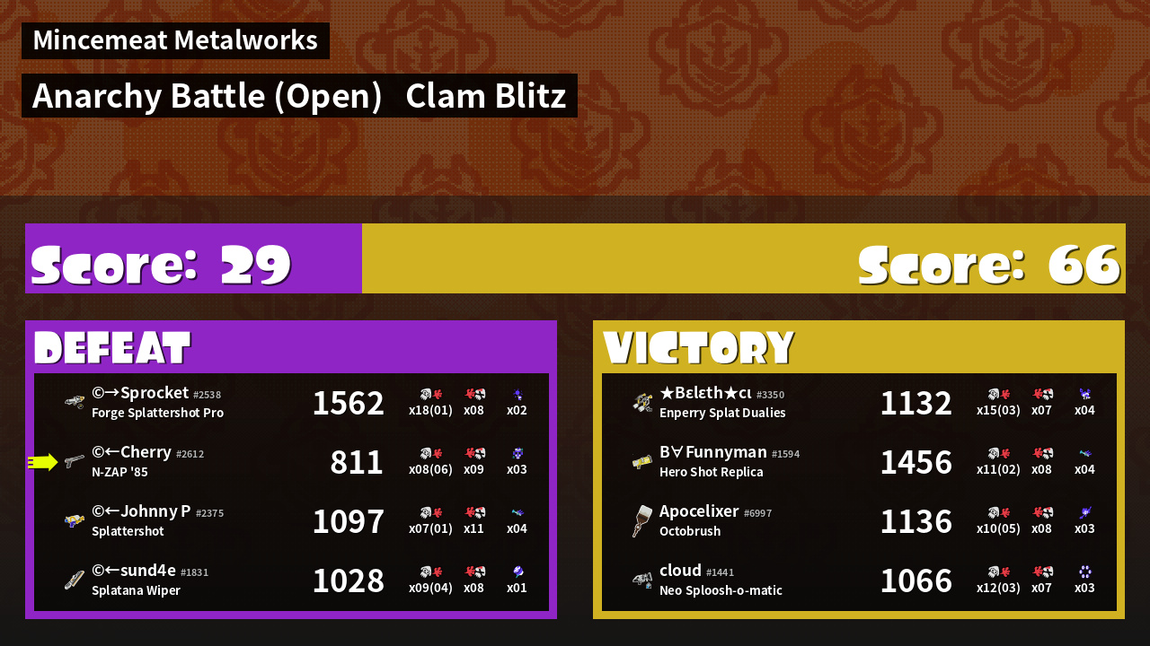 | Mode | Clam Blitz - Anarchy Battle (Open) | ||
