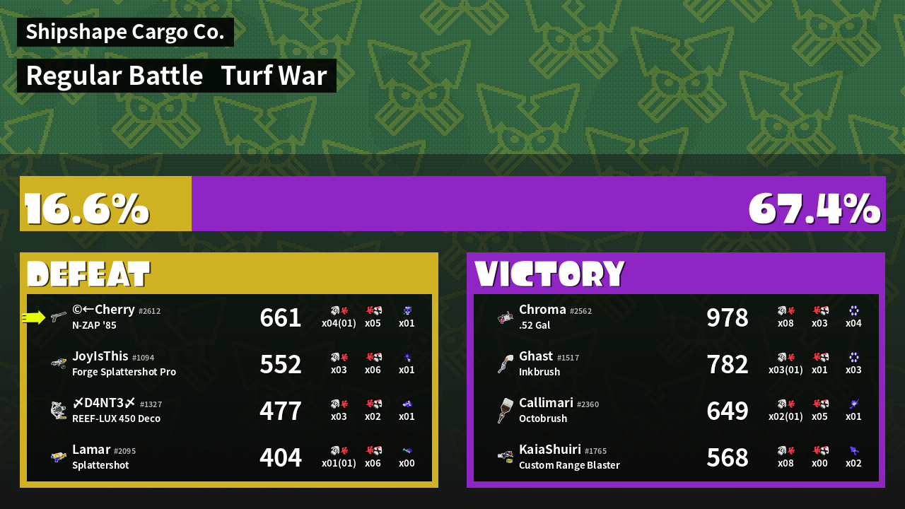 | Medals | #1 Overall Splatter #1 Turf Inker #1 Popular Target | ||