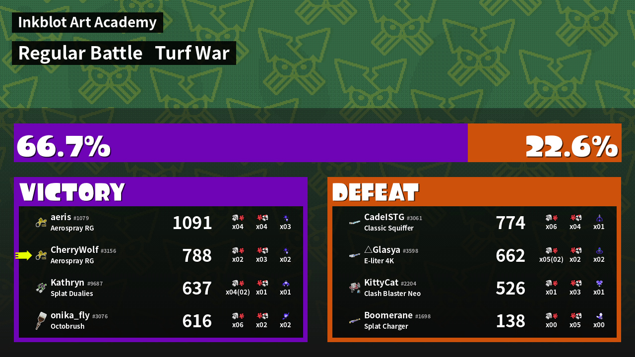 | Weapon | Aerospray RG ( Sprinkler / Booyah Bomb) | ||