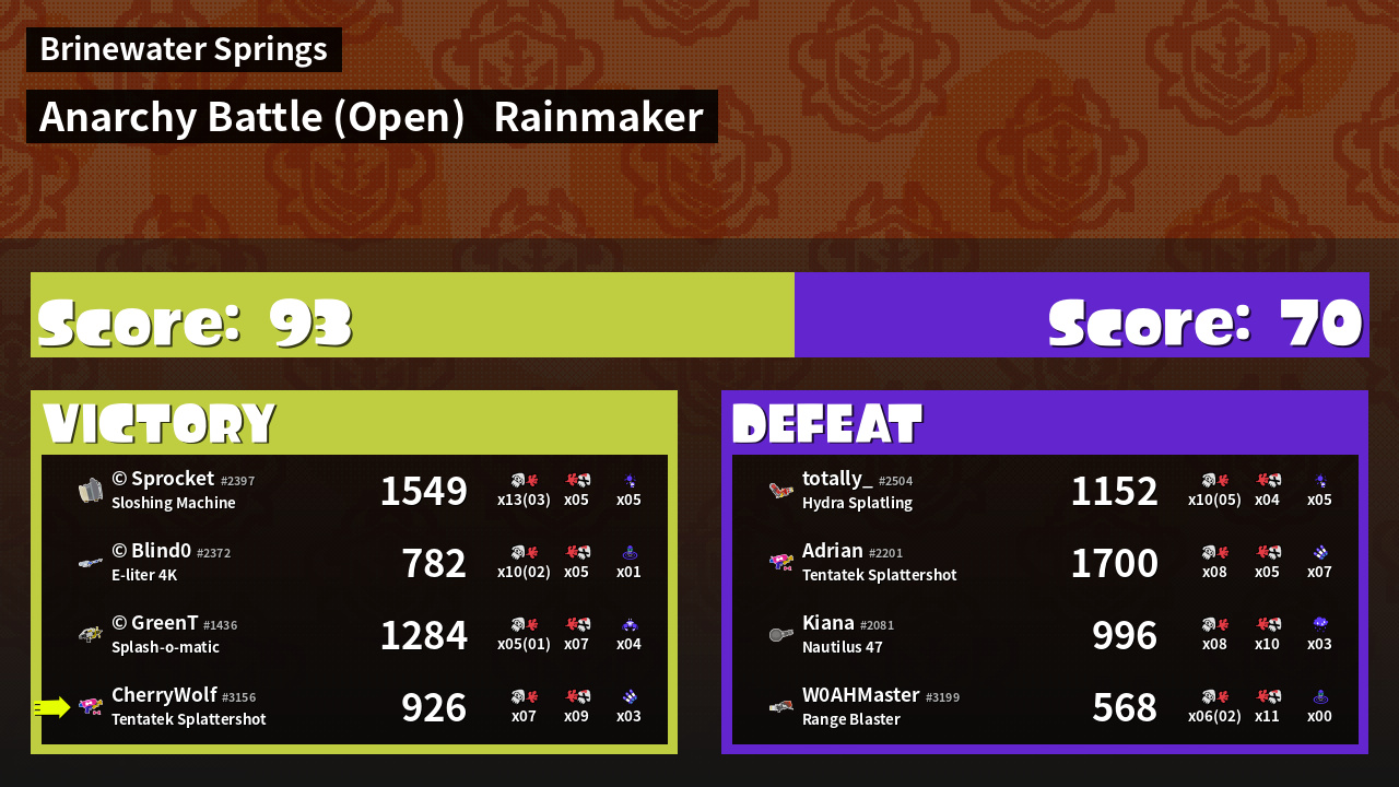 | Mode | Rainmaker - Anarchy Battle (Open) | ||