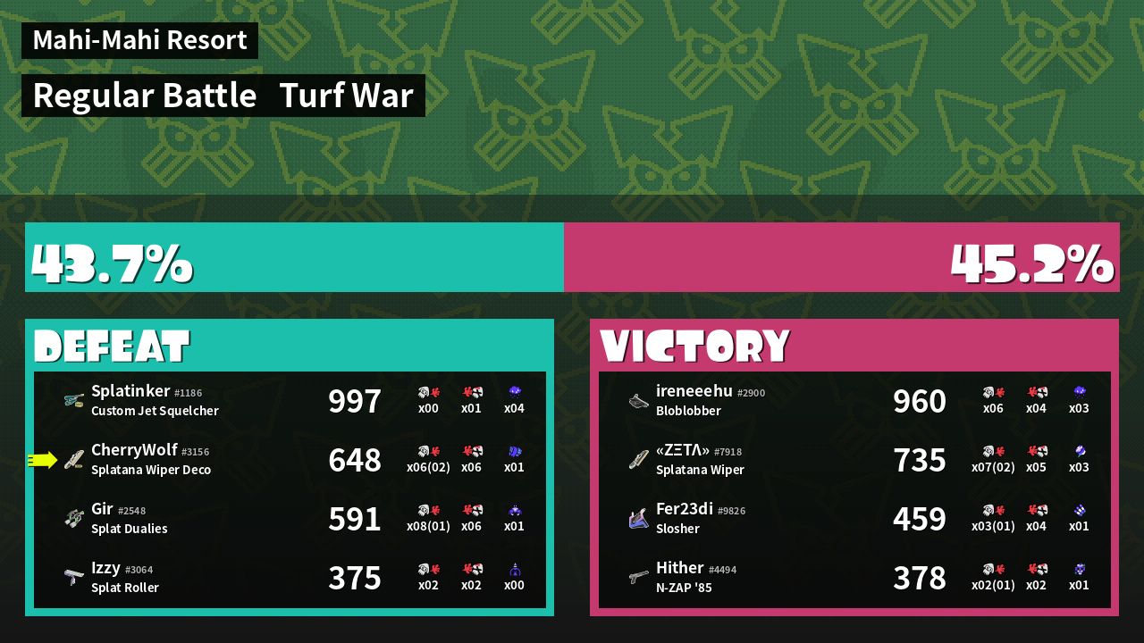 | Medals | #1 Splat Assister #1 Damage Taker First Splat! | ||