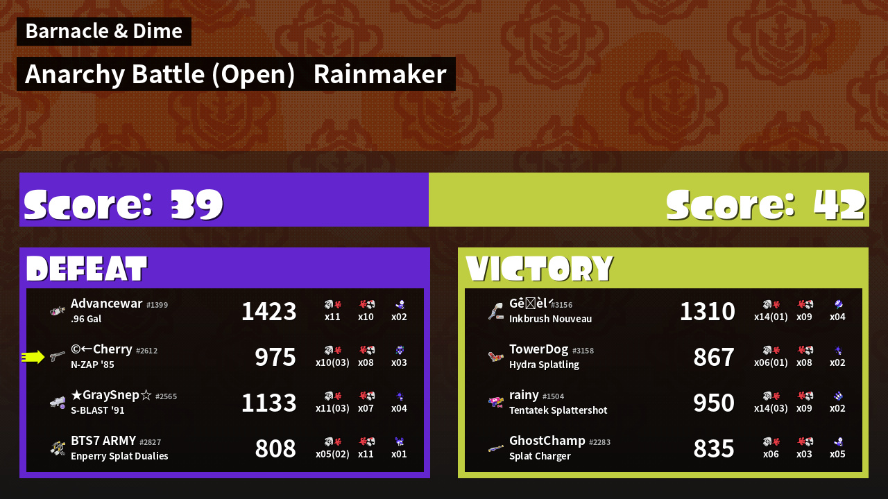 | Mode | Rainmaker - Anarchy Battle (Open) | ||