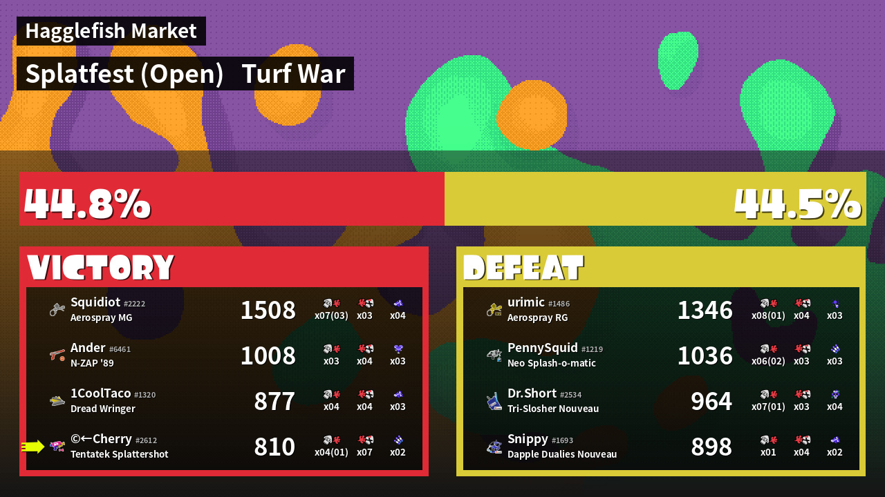 | Medals | #2 Overall Splatter #2 Popular Target #2 Home-Base Inker | ||